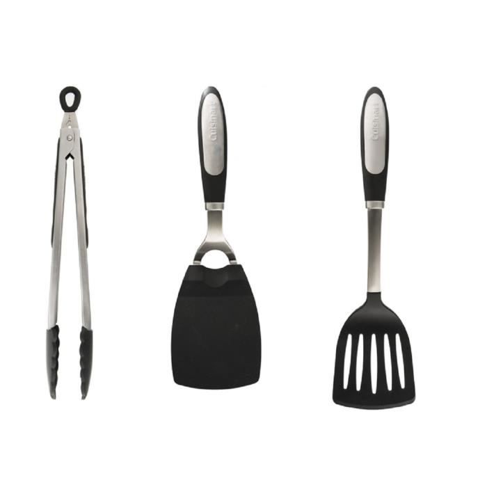 • CUISINART Lot de 3 accessoires Les Outils de Monsieur Paul - pince 34 cm + spatule flexible 31 cm + spatule ajourée 34 cm noir
