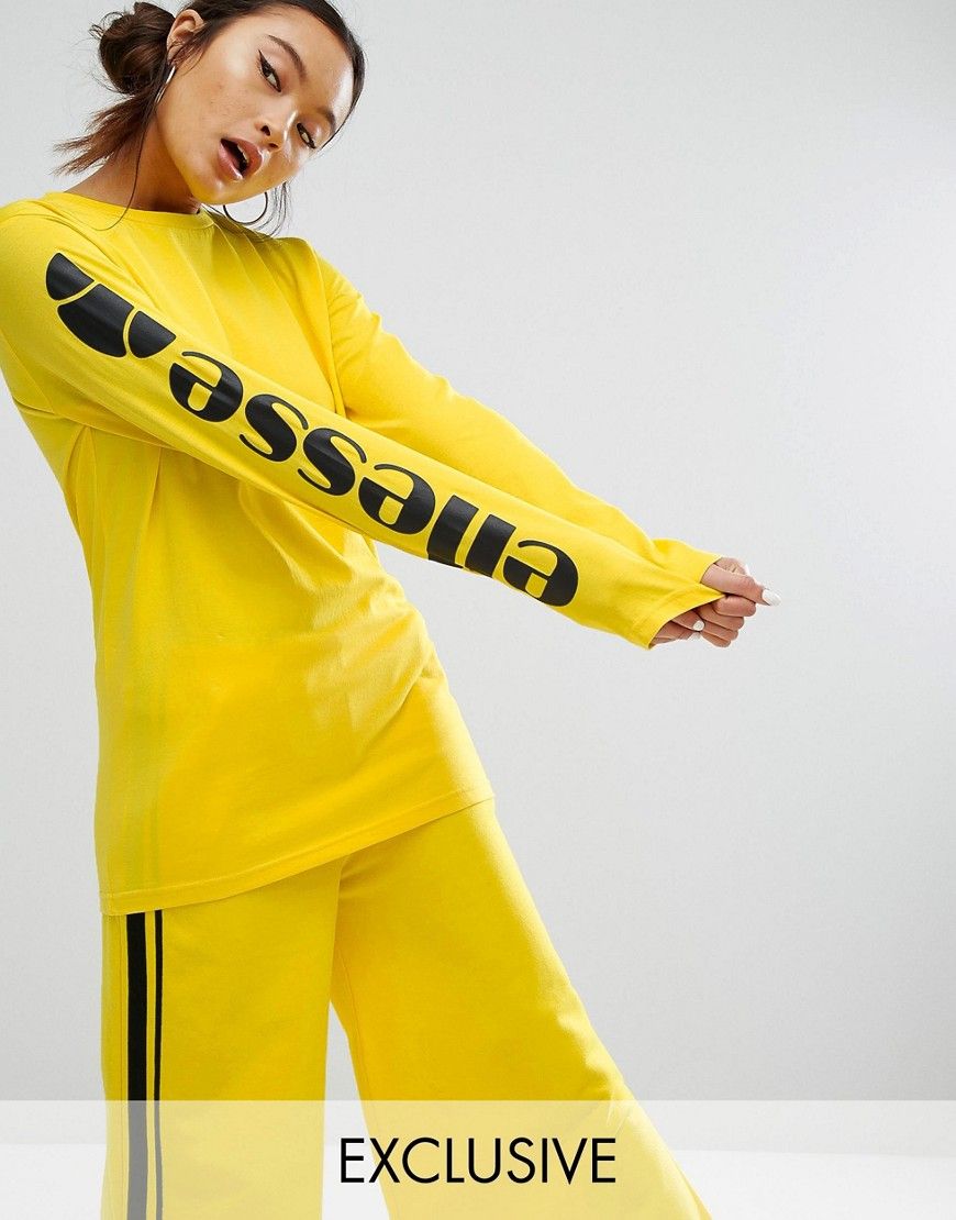 • Ellesse - T-shirt à manches longues avec logo sur manches contrastantes - Jaune