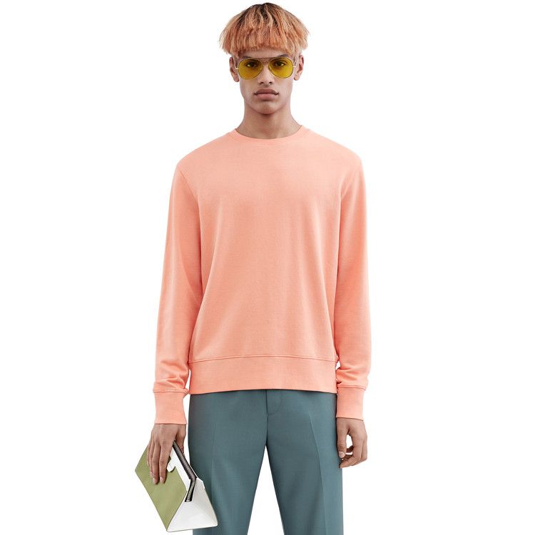 Acne Studios Casey burnt coral is a straight, slim fitting fleece sweatshirt designed for layering.
