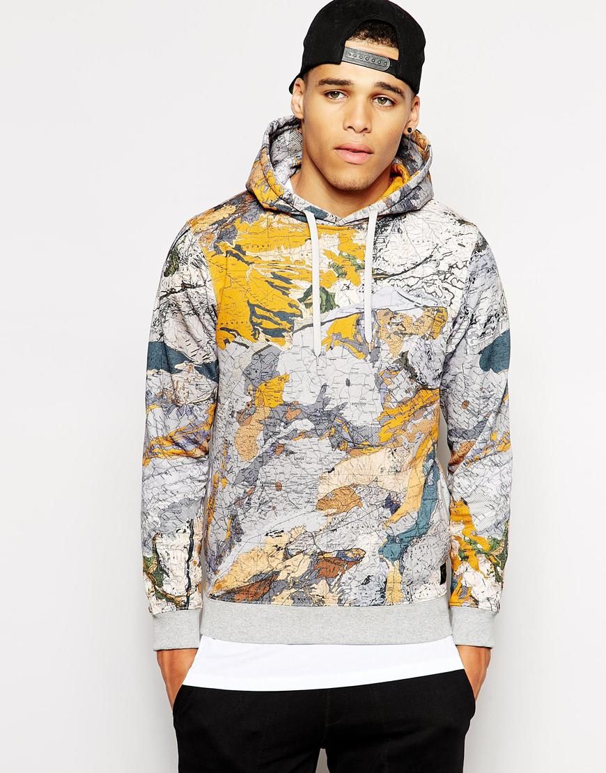 • Iuter - Sweat à capuche avec imprimé carte géographique sur l'ensemble - Gris