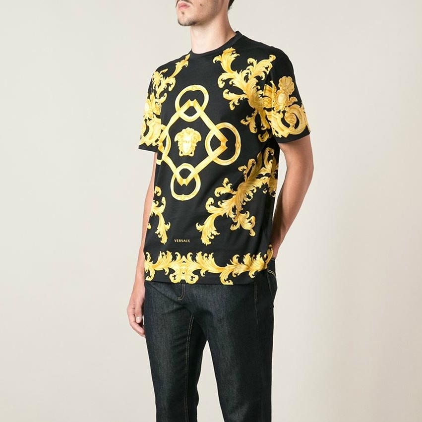 • Versace Black baroque print cotton T-shirt