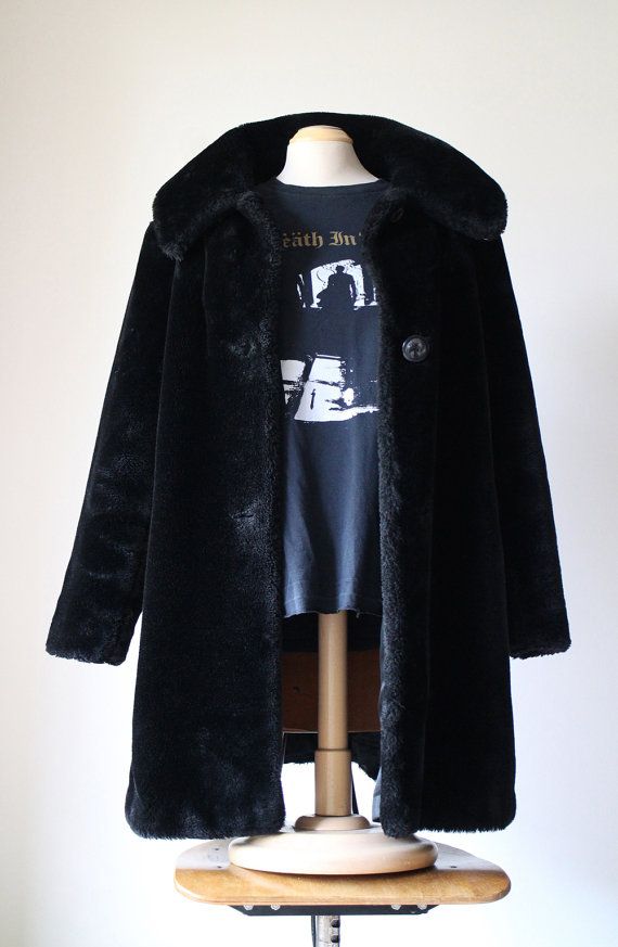 Etsy - Noir fausse fourrure manteau femmes mignon
